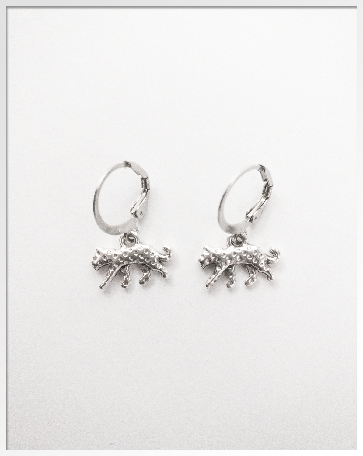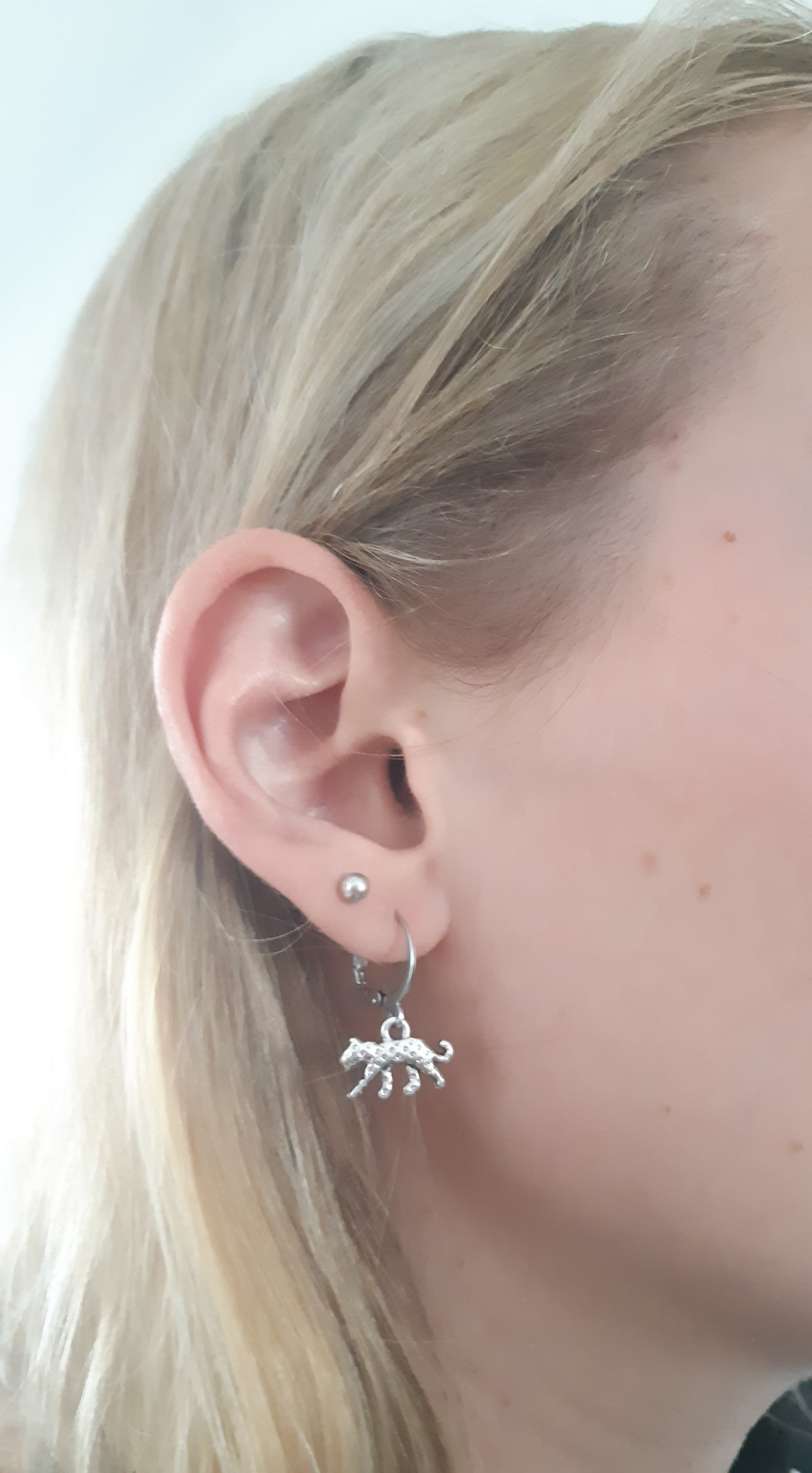 Hoe leuk is deze oorring met luipaard bedel! Dit sieraad is een mooie oorring waaraan een luipaard bedel bevestigd.